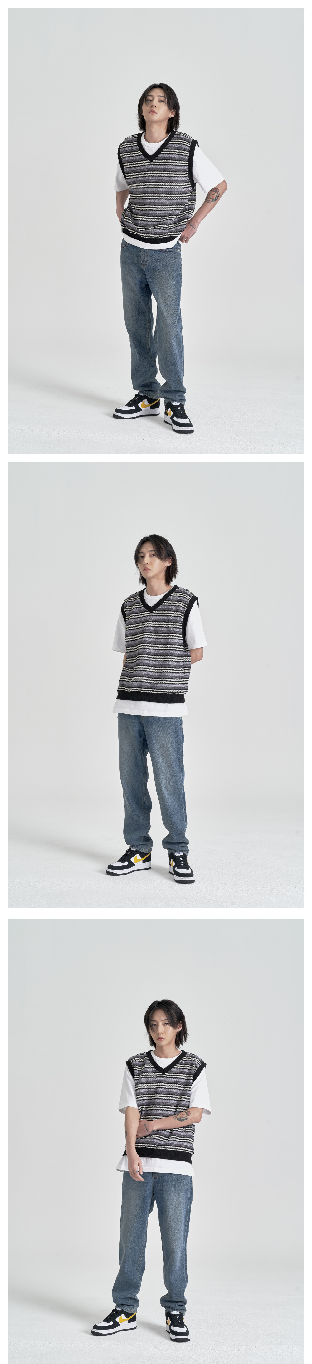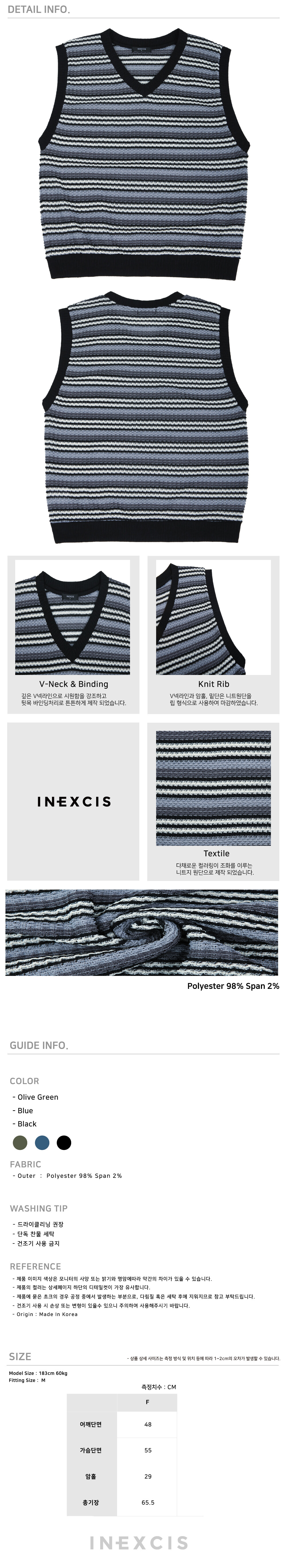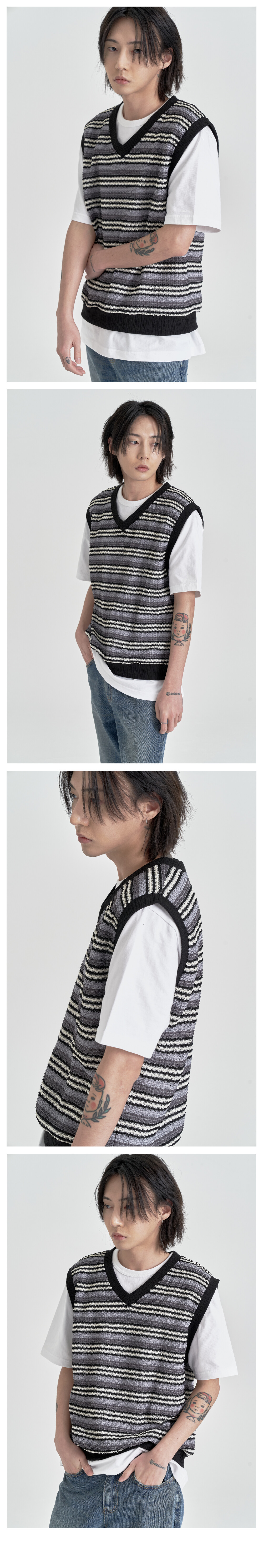적당히 얇은 두께감으로 한여름에도 착용 가능한 니트베스트 입니다.