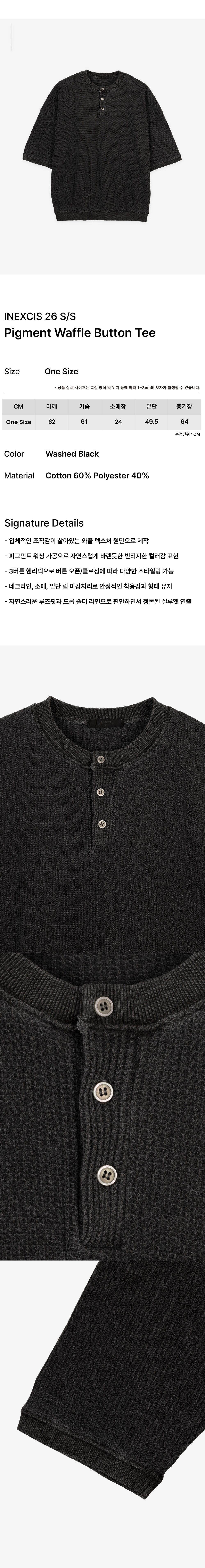 Pigment Waffle Button Tee (Washed Black)