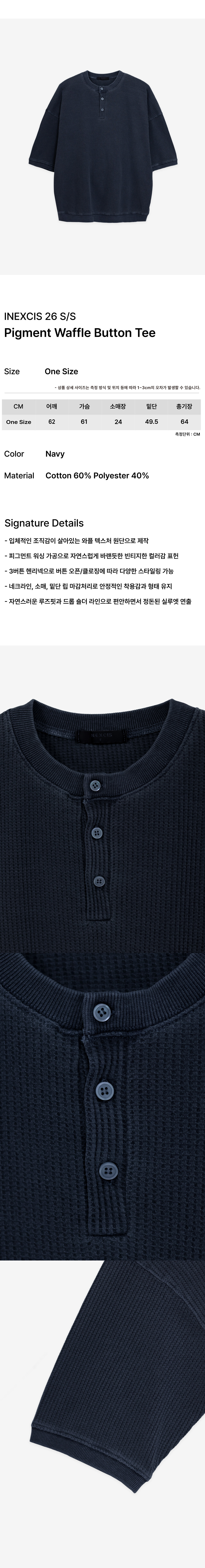Pigment Waffle Button Tee (Navy)